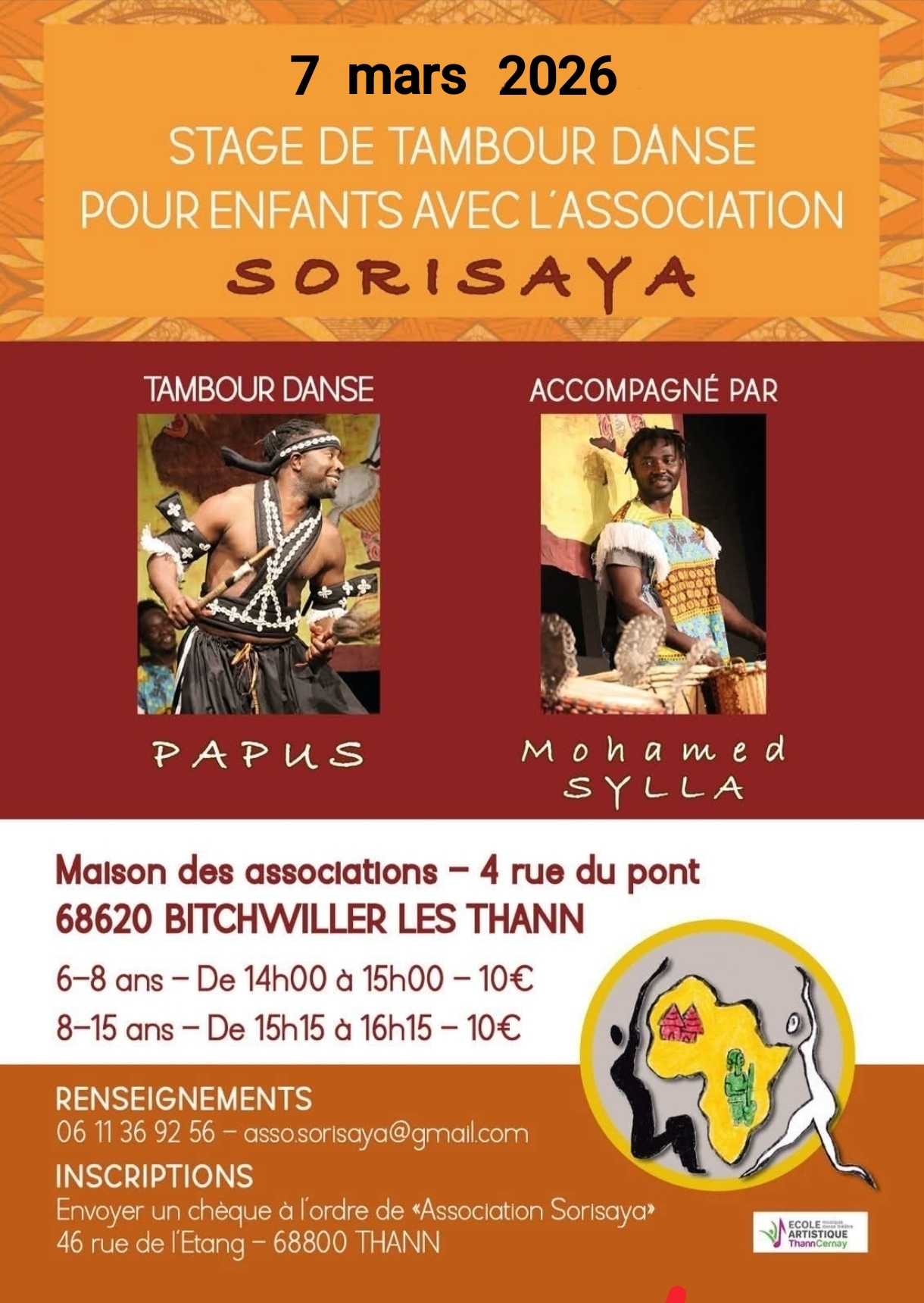 Stage tambour danse pour enfants, avec l’association Sorisaya