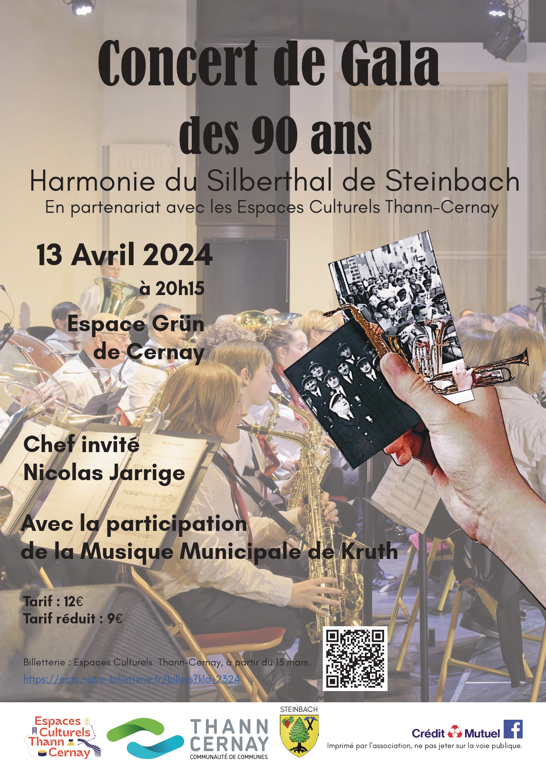 13 avril 2024 : 20 h 15 min - 22 h 00 min Concert de Gala des 90 ans Espace Grün 32 Rue Georges Risler, Cernay, France
